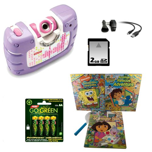 Fisher-Price Kid-Tough See Yourself Digital Camera - Purple Bundle for Girls